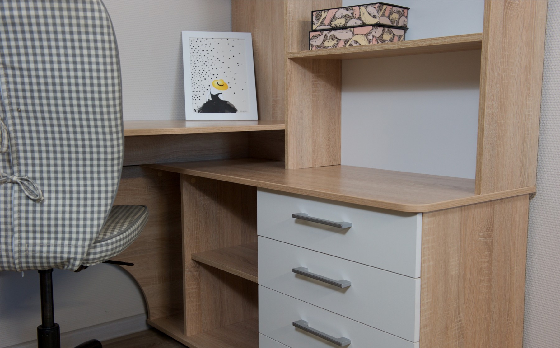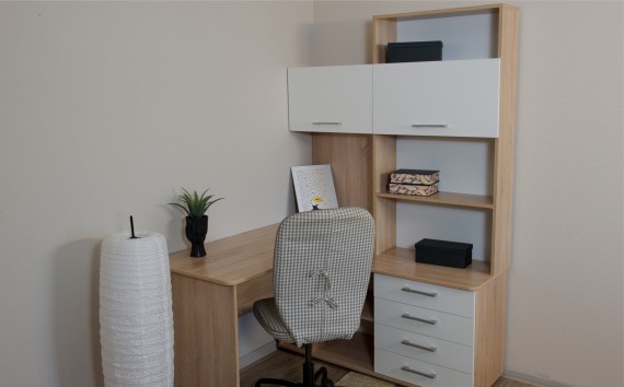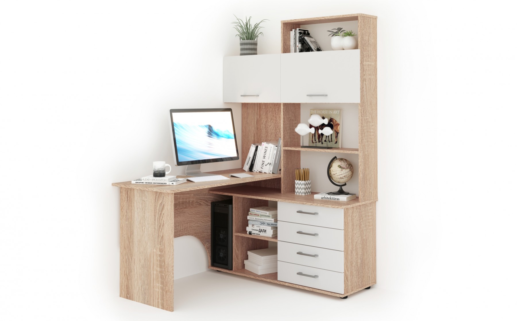 Стол письменный угловой – удобное рабочее место для студента, школьника, отличное решение для кабинета с интерьером в скандинавском стиле. На широкой столешнице легко поместится монитор, клавиатура и документы, на угловой части можно разместить оргтехнику. В столе выделено место для системного блока и для письменных принадлежностей. Его можно укомплектовать надставкой с множеством полок для папок, книг и декора. В столах системы Гарвард мягкие, удобные для опирающихся рук края, с кромкой в 2мм, а также, скруглённые углы столешницы. Корпус выполнен в теплом древесном цвете светлого дуба с приятной на ощупь фактурой, фасады - белые матовые. Нейтральные оттенки мебели позволяют легко вписаться уже в готовый интерьер. Кроме этого, столы можно укомплектовать другими предметами мебели из ассортимента Мебель Шара в аналогичном стиле.